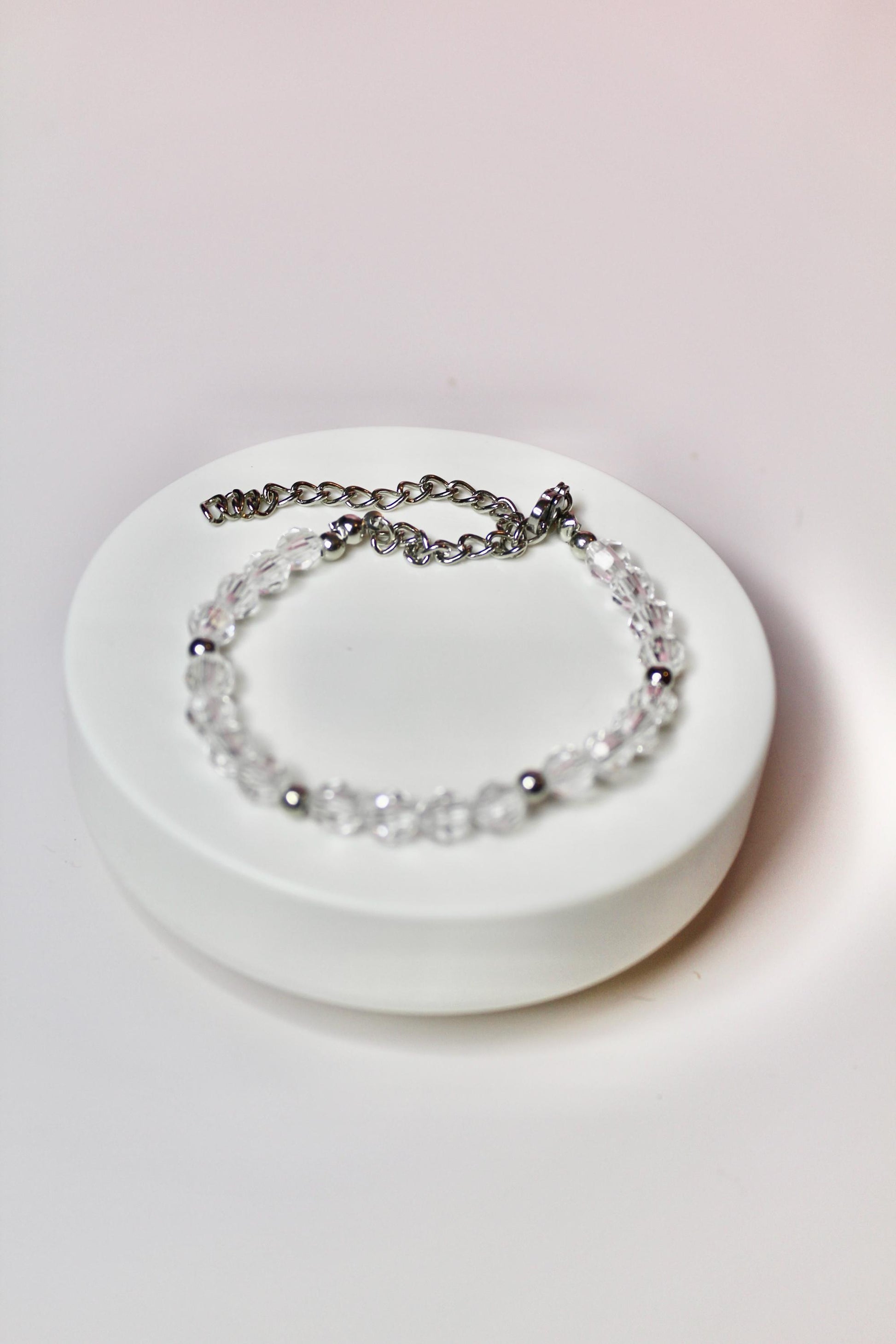 Featuring delicate clear beads that mimic the sparkle of crystals, this understated piece is perfect for any occasion. The adjustable design ensures a comfortable fit for all wrist sizes. Crafted with high-quality stainless steel, this bracelet is both durable and hypoallergenic. Add a touch of sophistication to your look without breaking the bank.